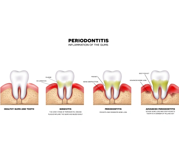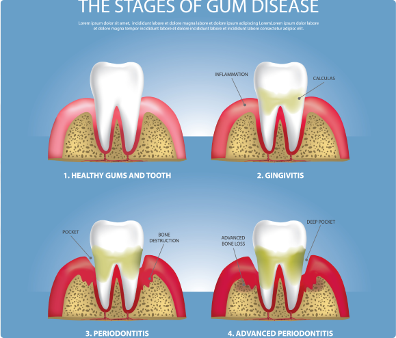 - If Gingivitis is left untreated, bacteria continues to build and damage the tissues and bone surrounding the teeth, resulting in “Periodontitis” or inflammation of the hard tissues. With Periodontitis, the bacterial damage results in periodontal pockets that can become infected and result in bone and connective tissue loss which ultimately lead to tooth mobility and tooth loss.